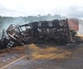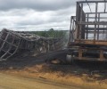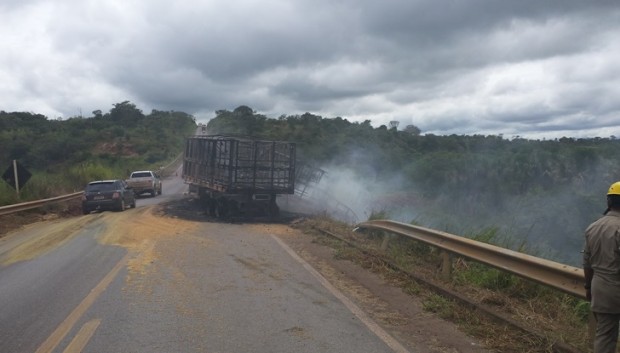 No local, a Equipe de Bombeiros Militares verificaram que dois caminhões encontravam em uma ribanceira de aproximadamente 15 m, com duas vítimas, uma em óbito, carbonizada e outra que já havia sido transportada por terceiros para o hospital.