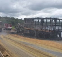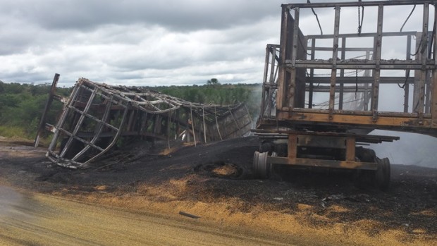 Na manhã do último domingo, 30 , a 3ª Companhia Independente Bombeiro Militar, em Jataí, atuaram em um grave acidente envolvendo duas carretas que transportavam soja.O acidente aconteceu na BR 158, Km 195, próximo ao córrego Dantas, no município de Caipônia, 80 km de Jataí.