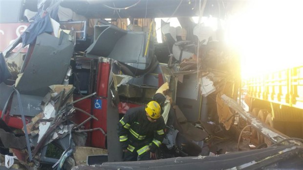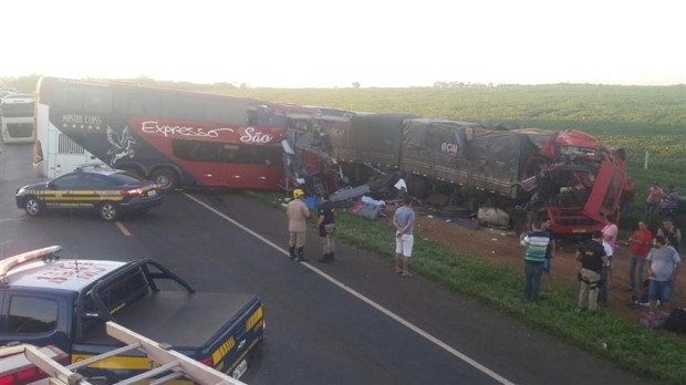 Na quarta-feira, 20, a 3ª Companhia Independente Bombeiro Militar, em Jataí,  foi acionada para uma ocorrência na BR 364, onde um ônibus colidiu de frente com um caminhão próximo ao município de  Mineiros. No local, os Bombeiros  encontraram  cerca de 59 feridos, dos quais o motorista da carreta e o motorista do ônibus tiveram ferimentos mais graves e forma levados para hospital da região. Outras três pessoas vieram a óbito no local. Atuaram na ocorrência as equipes da UR-175, ABS-13  e bombeiros de Mineiros. Confira fotos: