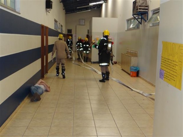 Bombeiros de Jataí realizam simulado em escola da cidade