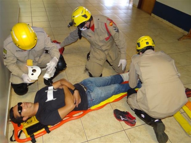 Na semana passada, os integrantes da 3ª Companhia Independente Bombeiro Militar (3ª CIBM) participaram de um simulado de Combate a Incêndios e Resgate Pré-Hospitalar nas dependências do Colégio de Dinâmico de Jataí. Para a simulação foi utilizado um bloco do colégio e para o resgate de vítimas a ferramenta do START. A atividade contou com o envolvimento dos funcionários que se encontravam no local fazendo uma evacuação de emergência. Confira as fotos: