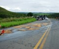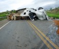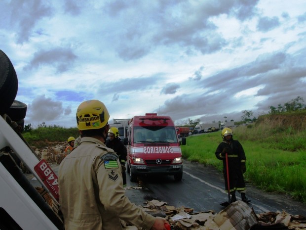 Bombeiros de Luziânia atuam em grave capotamento de caminhão na BR 040