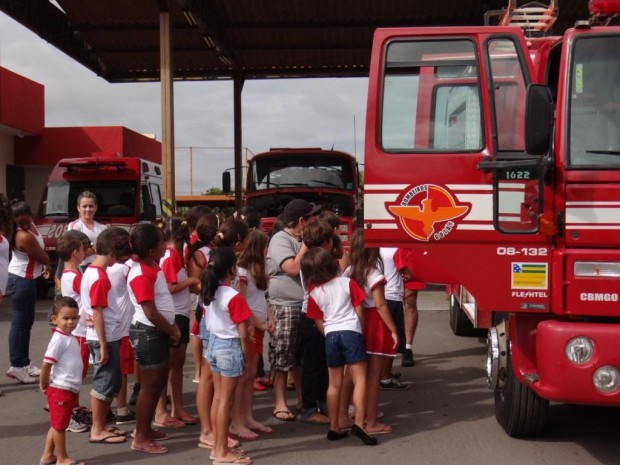 Bombeiros de Luziânia recebem visita de alunos de uma escola do município