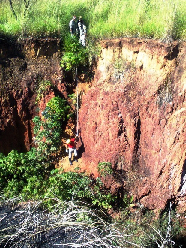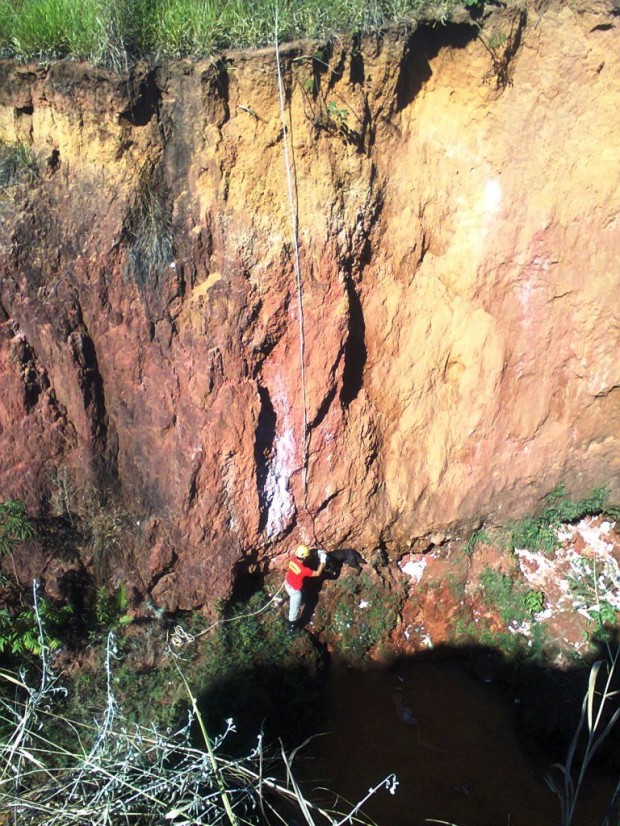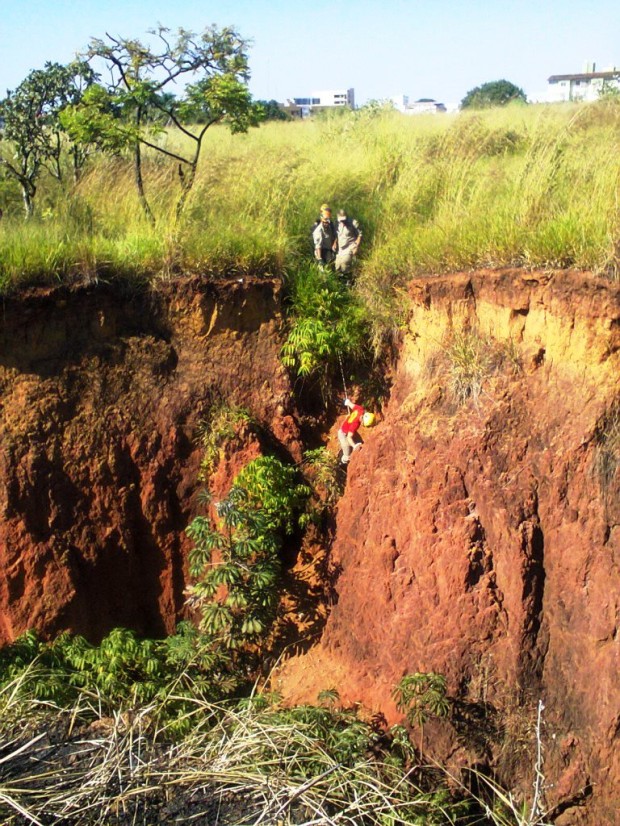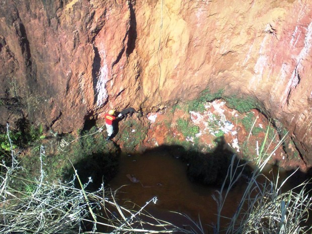 Bombeiros de Luziânia resgatam cachorro em cratera com 20 metros de profundidade em Valparaiso de Goiás