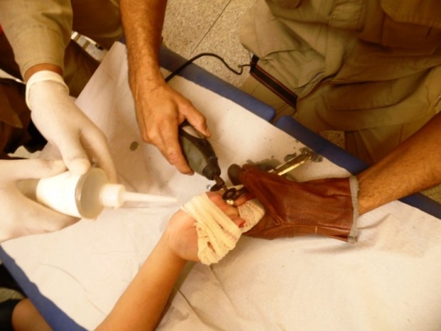 A guarnição de Salvamento do 5º Batalhão de Bombeiros Militar, em Luziânia, foi acionada pelo Hospital do Jardim Ingá para realizar a retirada do anel do dedo de uma mulher que procurou socorro no hospital. Com o auxílio de equipamento especial, a equipe de Bombeiros cortou e retirou o anel com êxito. Esse tipo de ocorrência é muito comum no cotidiano dos Bombeiros, o que varia é a gravidade de cada situação. Normalmente, o dedo está com algum grau de edema (inchaço) que impede a retirada do anel ou outro objeto de uma forma natural. Em alguns casos mais graves, há a exposição dos tecidos subcutâneo, muscular e até ósseo. Confira as fotos do atendimento prestado pelos Bombeiros de Luziânia: