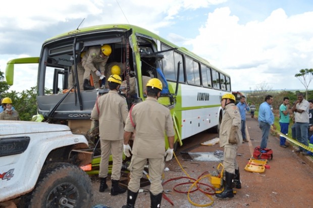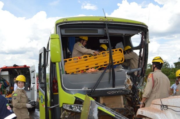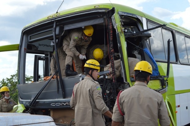 Bombeiros de Mineiros atuam em acidente envolvendo dois ônibus