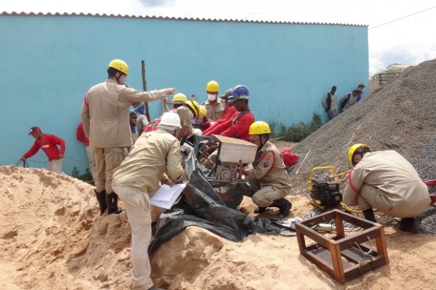 Bombeiros de Mineiros socorrem trabalhador que ficou preso em máquina de coar areia