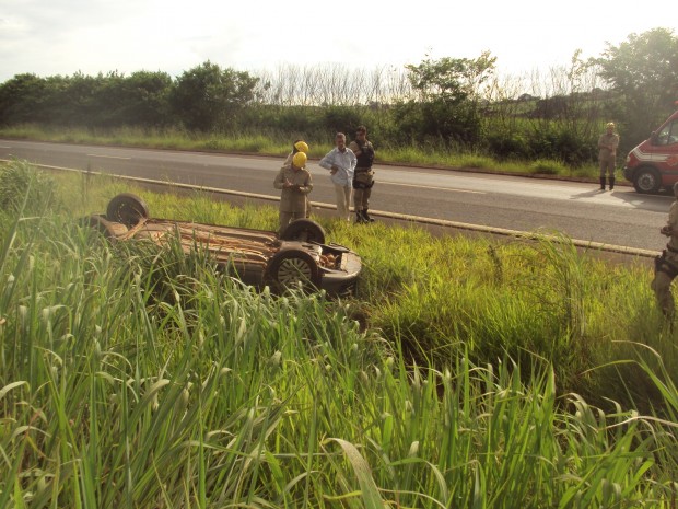 Na tarde de quinta-feira, dia 21, a 2ª CIAOP/ 9º BBM, em Morrinhos, foi acionada para atender uma ocorrência de acidente de trânsito envolvendo um veículo de passeio, da marca Gol, com três ocupantes. O veículo trafegava na BR-153 no sentido Morrinhos – Itumbiara e veio a capotar próximo ao Km 657, quando, ao ultrapassar uma carreta, o motorista perdeu a direção e caiu no canteiro central da rodovia.