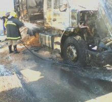 A guarnição de combate a incêndio deslocou até o local, onde foi constatado um incêndio na parte dianteira do caminhão que transportava calcário. O combate foi realizado utilizando o mangotinho, sendo empregado toda a reserva de água do caminhão ABS-15 com capacidade de 2.000 litros.