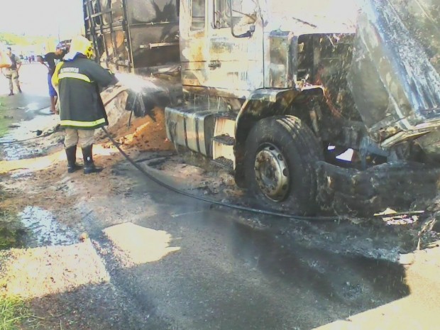 A guarnição de Bombeiros contou com o apoio da Polícia Rodoviária Federal, que interditou a pista e também de um caminhão pipa da cidade. Confira fotos: