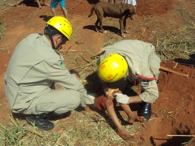 Bombeiros de Morrinhos resgatam com vida criança que caiu em buraco de construção civil