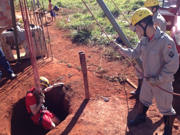 Bombeiros de Palmeiras de Goiás resgatam vaca que caiu em cisterna com 11 metros de profundidade
