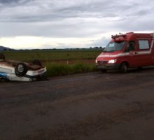 Bombeiros de Palmeiras de Goiás resgatam vítima de capotamento na GO-050