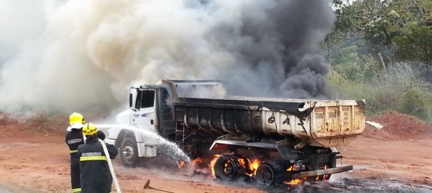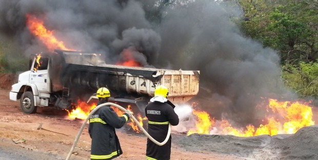 Bombeiros de Pirenópolis combatem incêndio em veículo