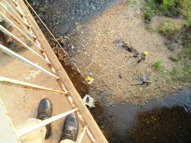 Bombeiros da 11ª Companhia Independente Bombeiro Militar, em Pirenópolis, de acordo com o Programa de Aperfeiçoamento Profissional instituído pela Corporação, participaram de uma instrução prática de salvamento em altura. A aula foi realizada na Ponte Nova sobre o Rio das Almas.
