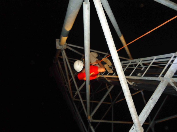 A 10ª Companhia Independente Bombeiro Militar, em Planaltina, foi acionada, na segunda-feira, dia 29, para atender uma ocorrência de tentativa de auto-extermínio. A guarnição de salvamento deslocou para o local e fez o isolamento da área com o apoio da Polícia Militar. A vítima de 31 anos subiu em uma torre de telefonia de aproximadamente 80 metros de altura e ameaçava se jogar. O 1º Tenente Juliano subiu na torre, por volta das 17h30, fez o primeiro contato com a vítima e conseguiu acalmá-la. Contando com o apoio do Soldado Gilvano e utilizando técnicas de salvamento em altura, os militares fizeram a contenção da vítima e a resgataram com sucesso. Confira as fotos: