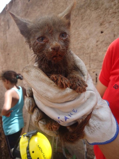 Bombeiros de Planaltina resgatam gato preso em fosso de residência