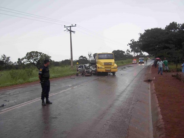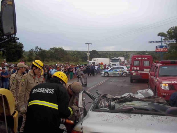 Quatro pessoas vieram a óbito no local e uma criança politraumatizada foi transportada para o hospital da cidade. O caminhão saiu de Planaltina de Goiás e ia para Lagoa, uma cidade próxima, mas ao tentar desviar de um veículo parado no meio da pista, derrapou e acabou fechando a rodovia. O carro, que seguia no sentido contrário, acabou batendo contra a carreta. Também contribuíram no atendimento e socorro as vítimas o Serviço de Atendimento Móvel de Urgência (SAMU) e a Polícia Militar. Confira as fotos: