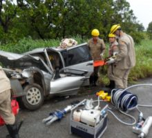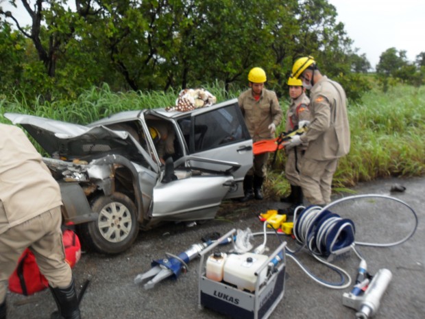 Bombeiros de Porangatu atuam em ocorrência de colisão entre veículos com vítima na BR 153