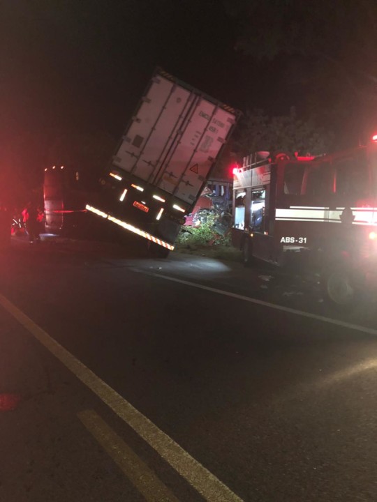 Bombeiros de Porangatu foram acionados para resgatar múltiplas vítimas de uma colisão entre um ônibus e um caminhão na BR-153, próximo a fronteira de Tocantins com Goiás. Os bombeiros atenderam 58 vítimas, sendo 56 passageiros do ônibus e dois passageiros do caminhão. Foram constatados três óbitos e 30 vítimas com ferimentos diversos, que foram transportadas para o hospital. O atendimento ocorreu em conjunto com o SAMU, ambulâncias da Prefeitura de Porangatu e PRF. As demais vítimas que não apresentavam ferimentos foram transportadas pela Defesa Civil para a cidade de Porangatu.