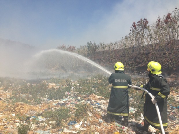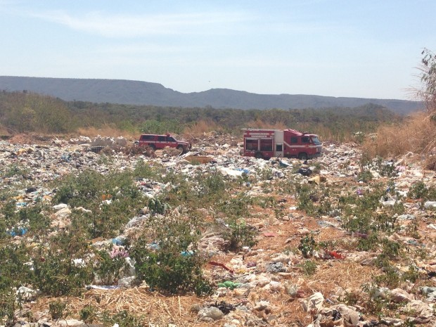 Bombeiros de Posse combatem incêndio em aterro sanitário
