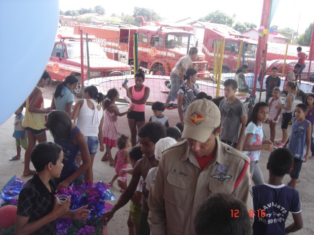O 3º Pelotão de Bombeiros Militar, 3º PBM, em Posse, comemorou em suas instalações, na sexta feira, dia 12 , o Dia da Criança. Estavam presentes as crianças do Orfanato de Posse (Casa Criança Feliz – Pequeno Edson), além de filhos dos militares e várias crianças convidadas. Ao todo, cerca de 100 crianças, com idades entre 4 a 14 anos, participaram da festividade. As crianças puderam desfrutar de momentos de lazer e descontração, conhecendo as viaturas dos bombeiros e brincando no pula pula. Na ocasião, foi oferecido ainda algodão doce, salgados, e diversas guloseimas para a criançada, alem da distribuição de brinquedos. Confira as fotos: