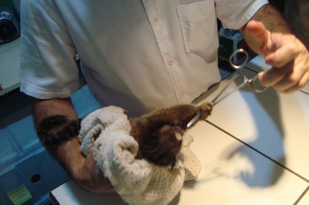 No último dia 11 de maio, por volta das 11h, o Corpo de Bombeiros Militar de Quirinópolis foi acionado para comparecer na Rua Secundino Pereira, no Bairro Morumbi, onde um morador do local encontrou um macaco sagui. O animal, que estava debilitado, provavelmente foi atropelado em uma das rodovias que corta a cidade. Os bombeiros resgataram o animal que passará por avaliação veterinária. Confira fotos: