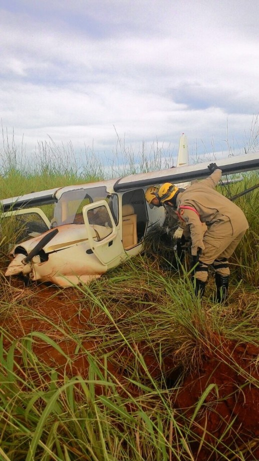 Bombeiros de Quirinópolis socorrem vítimas de pouso forçado de monomotor
