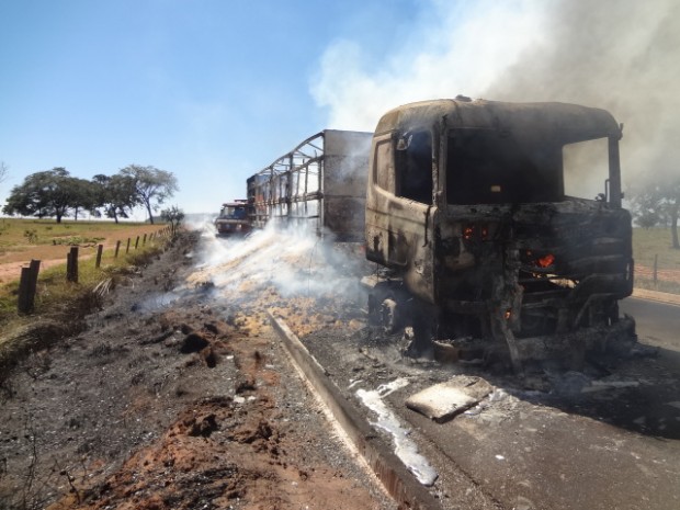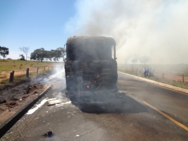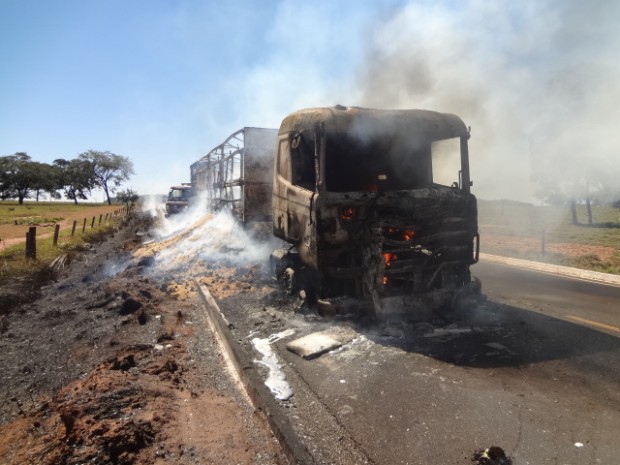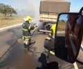 Na ultima sexta-feira, dia 10, por volta das 11h05min, a guarnição do ABS-13 e do ACF-07 do 4º Batalhão Bombeiro Militar atenderam a uma ocorrência de incêndio em uma carreta na GO- 174 próximo ao km 45, zona rural de Rio Verde, sentido Aparecida do Rio Doce. A carreta e a carga de farelo de soja ficaram em chamas, que foi logo extinto pelos bombeiros, o condutor não soube relatar as causas do incêndio, e não sofreu lesões. Atenderam a ocorrência o 3º Sargento Marques, 3º Sargento Lindomar, 3º Sargento Maciel e Cabo Higor. Confira fotos: