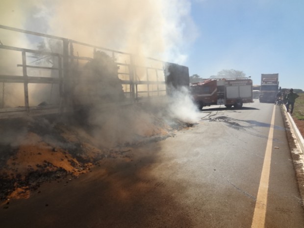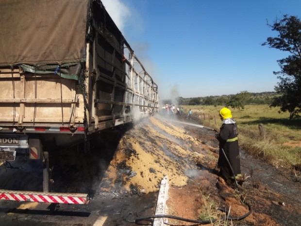 Bombeiros de Rio Verde atendem ocorrência de incêndio em Carreta