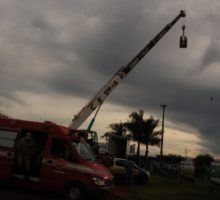 Na quinta-feira, dia 11, os Bombeiros do 4º Batalhão Bombeiro Militar, em Rio Verde, presentes no Evento Tecnoshow Comigo, socorreram dois funcionários que estavam prestando serviço em um guindaste. Durante o trabalho, ocorreu uma falha mecânica que paralisou o guindaste, há aproximadamente 30 metros de altura, sendo necessário o auxílio do Corpo de Bombeiros através de outro guindaste para resgate de funcionários. Confira fotos: