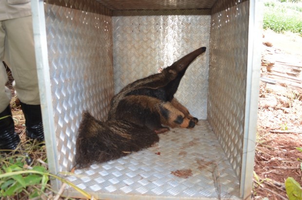 Na última segunda-feira, dia 14, o 4º Batalhão Bombeiros Militar, em Rio Verde, foi acionado para capturar três animais silvestres: um tamanduá-bandeira, um tatu e uma capivara. A equipe de busca e salvamento ainda foi acionado para resgatar um cachorro, que estava preso em um bueiro. O tamanduá-bandeira foi capturado próximo a uma escola, o tatu e a capivara estavam na Companhia Nacional de Abastecimento – CONAB e o cachorro em um bueiro dentro da cidade. Nenhum dos animais apresentavam ferimentos. Participaram das ocorrências a guarnição da ASA-36 composta pelo 3º Sargento Cosmo e pelo Soldado Fábio Silva. Confira fotos: