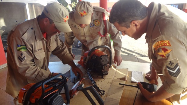 Bombeiros de Rio Verde realizam durante esta semana, de 8 a 12, capacitação para Manutenção em Motosserra. A instrução foi ministrada pelo Sargento Reginaldo para todos os bombeiros  das alas, com intuito de aprimorar conhecimentos. Confira fotos: