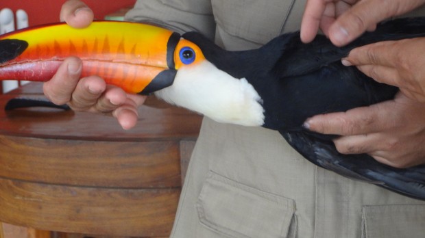 Foi entregue aos Bombeiros Militares do serviço de dia do 4º BBM, em Rio Verde, um tucano com as asas cortadas. O animal silvestre estava caído no meio de uma rua tentando voar, quando um senhor percebeu que ele estava ferido. Após receber o tucano, os militares o encaminharam à clínica veterinária Mundo Animal em Rio Verde.
