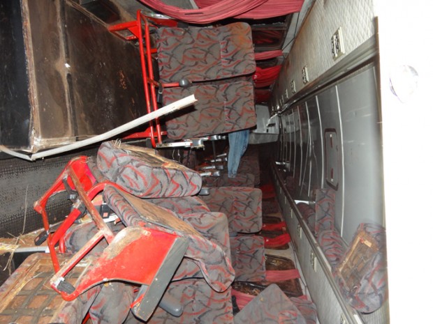 O ônibus teve saída de pista, caiu em um barranco e capotou. Dentro estavam 36 passageiros, alguns deles foram lançados para fora do ônibus.