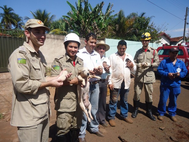 Uma equipe da Secretaria de Meio Ambiente foi acionada para apoiar os bombeiros e com o uso de uma picareta, foi localizado com precisão o local onde estavam os animais, que foram retirados com segurança.