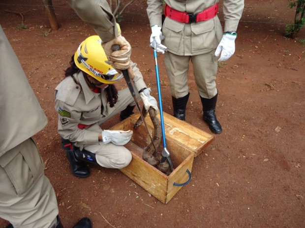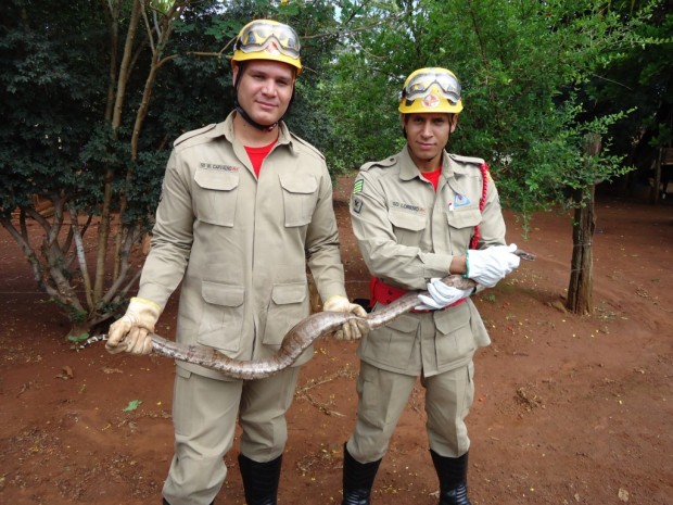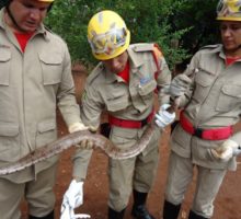 Na última segunda-feira, dia 31, a 12ª Companhia Independente Bombeiro Militar foi acionada para atender uma ocorrência de captura de cobra. A guarnição ABS-16 deslocou até a fazenda e realizou a captura de uma Jiboia de quase 2 (dois) metros de comprimento que estava no telhado de uma residência. A cobra foi capturada com o auxilio de equipamentos específicos sem ferimentos. Confira fotos: