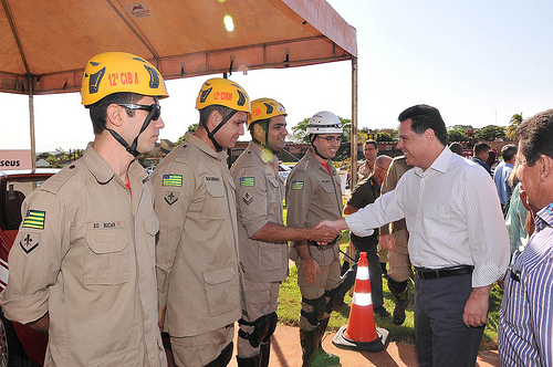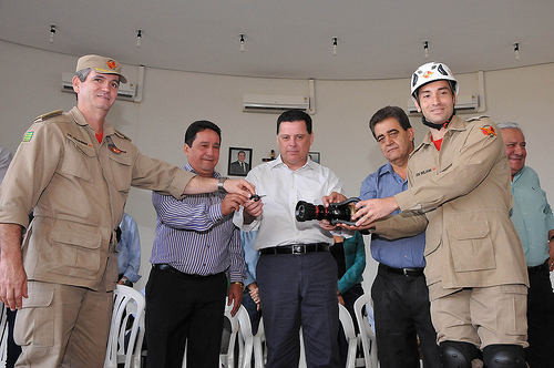 O governador Marconi Perillo, acompanhado do Comandante Geral do Corpo de Bombeiros Militar do Estado de Goiás (CBMGO), Coronel Carlos Helbingen Júnior, entregou para os Bombeiros de Santa Helena uma nova viatura administrativa e equipamentos operacionais. O governador esteve na cidade, na manhã de quarta-feira, dia 25, para entregar certificados do programa Bolsa Futuro. A solenidade foi realizada no auditório da Câmara Municipal. Durante toda o evento, guarnições da 12ª Companhia Independente Bombeiro Militar fizeram trabalho preventivo para garantir a segurança dos participantes. Confira fotos: