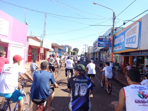 Bombeiros de Santa Helena de Goiás realizaram trabalho preventivo durante passeio ciclístico promovido na manhã de quarta-feira, dia 1º de maio. O evento percorreu várias ruas da cidade em um total de11 quilômetros. Aproximadamente 900 pessoas participaram do passeio que também teve por objetivo arrecadar alimentos para uma casa de recuperação a dependentes químicos da cidade. A guarnição de resgate da 12ª CIBM composta pelo Sargento Renato, Soldados Aryanne e Renato atuaram na prevenção e na segurança de participantes. Bombeiros de folga também participaram do evento competindo como o Cabo Cristiano. Confira fotos: