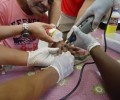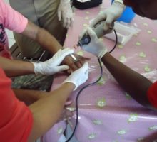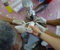 A peça era um anel com rosca utilizado para conectar mangueiras de jardim. Com a utilização de um equipamento próprio para este tipo de ocorrência, a equipe conseguiu retirar o objeto. Em seguida, foi realizado a limpeza e curativo do ferimento.  Confira fotos:
