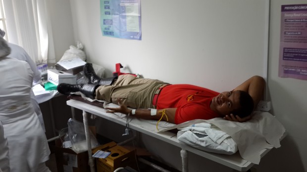 O segundo evento da semana foi a participação voluntária dos bombeiros na campanha de doação de sangue da cidade, fortalecendo esta parceria entre Corpo de Bombeiros Militar, Prefeitura e Secretaria Municipal de Saúde, ajudando várias vidas que necessitam de sangue. Além do comandante da Unidade, Cap Alexandre, colaboraram a Cb Aline Telles, e os Soldados Leão e Rezende.