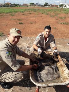 Equipes de resgate do 14°Batalhão de Bombeiros Militar em Senador Canedo foram acionados na tarde de domingo, 9, para resgatar uma cão que estava preso em uma poça de piche. Cerca de dois terços do corpo do animal estava preso na substância. A guarnição atuou com cuidado para retirar o animal sem o ferir. Após o resgate, os bombeiros deram um banho no animal, que permaneceu dócil durante toda operação.