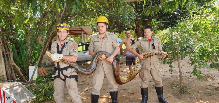Bombeiros de Senador Canedo resgatam sucuri em Bela Vista de Goiás
