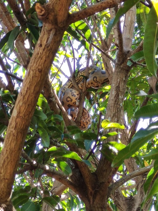 Na tarde de domingo, 12, o 14° BBM de Senador Canedo foi acionado para retirar uma cobra sucuri de uma propriedade residencial em Bela Vista de Goiás. Ao chegar no local, deparamos com o animal em uma árvore frutífera e a uma altura de 7 a 8 metros. Com o uso de técnicas e equipamentos, a cobra foi retirada e transportada para ser solta em reserva.