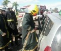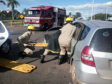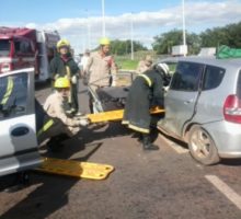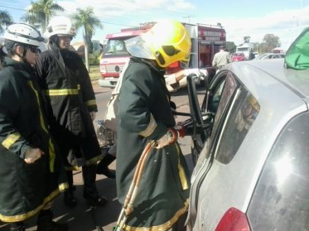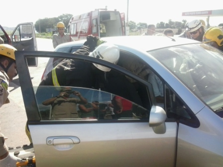 A 1ª Companhia Independente Bombeiro Militar, em Trindade, foi acionada na tarde desta terça-feira, dia 6, para atender uma ocorrência de colisão entre dois veículo, na GO 060 em frente ao Setor Pontakaiana. Apesar da violência do impacto, os quatro ocupantes dos veículos, três mulheres e um homem, foram encaminhados ao Hospital de Urgências de Trindade (HUTRIN) com apenas ferimentos leves. Para a retirada de um dos condutores foi necessário fazer a retirada de porta com o desencarcerador do ABS-09. Confira fotos: