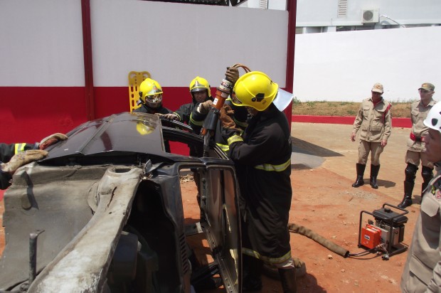 Logo após foi realizado a prática com três veículos em situações diferentes, simulando assim uma maior quantidade de ocasiões reais que os bombeiros possam encontrar no seu dia a dia.