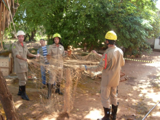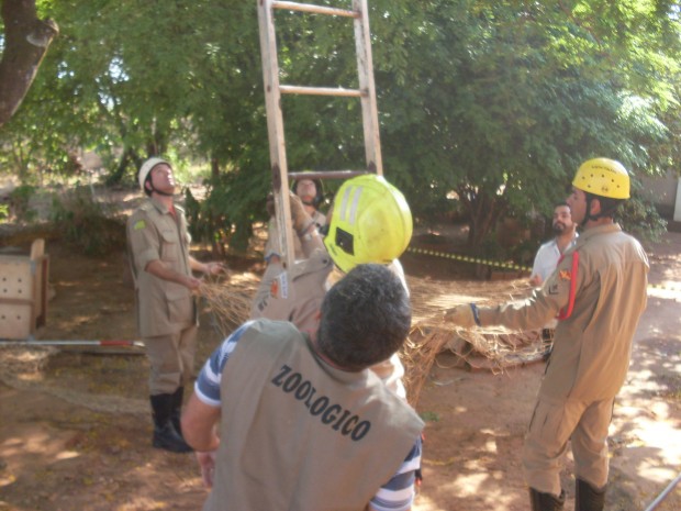 Como o local era de difícil acesso e uma tentativa de captura utilizando apenas meios físicos poderia colocar em risco a integridade física do animal e da guarnição envolvida, foi solicitado apoio do IBAMA e do Parque Zoológico de Goiânia, que prontamente atenderam à solicitação. O animal foi contido farmacologicamente com o uso de dardo disparado por uma zarabatana.