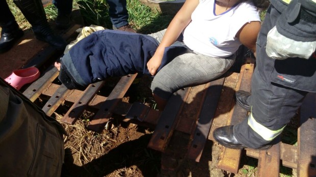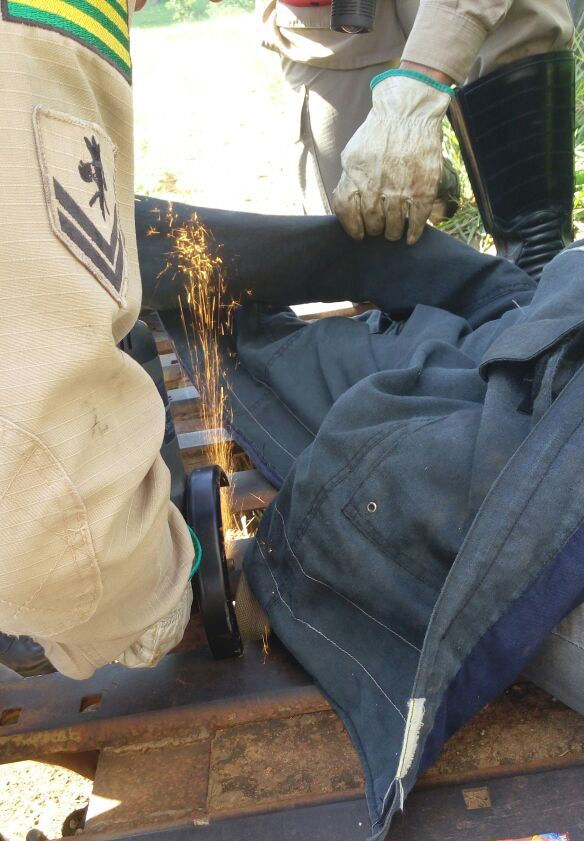 Bombeiros da 1ª Companhia Independente Bombeiro Militar, de Trindade, foram acionados na tarde desta sexta-feira, 1º, para socorrer uma pessoa que caiu em um estrado. Uma adolescente de 15 anos ficou com uma das pernas presas no vão do equipamento de aço muito utilizado para impedir a fuga de animais em propriedades rurais, conhecido por mata-burro.