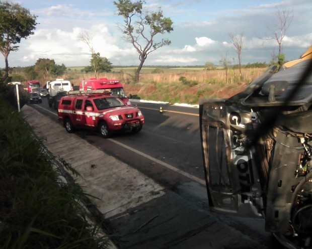 Bombeiros do 1º Pelotão Bombeiro Militar, em Uruaçu, foram acionados no último sábado, dia 10 para uma ocorrência de acidente automobilístico, na BR-153, zona rural de São Luiz do Norte. O acidente, envolvendo dois veículos de grande porte, com colisão frontal, com três vítimas. Uma das vítimas foi levada pela ambulância de São Luiz do Norte, uma segunda vítima foi arremessada para fora do veículo,  encontrada sem sinais vitais, na rodovia. Outra vítima, estava pressa às ferragens, foi retirada pela guarnição de bombeiros e conduzida até a unidade de saúde de Ceres, pela equipe do Samu. Confira fotos: