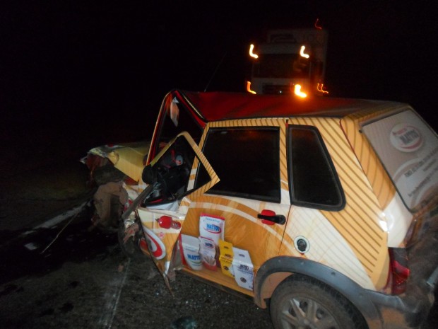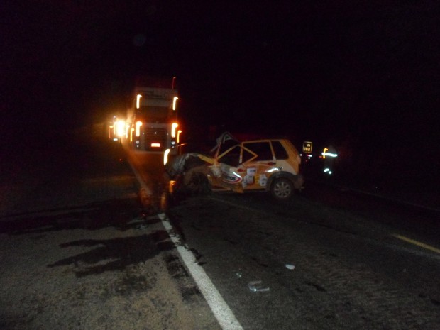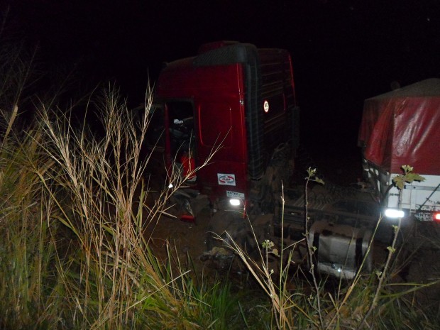 Mais tarde, ás 23:44 outro acidente na BR- 153, zona rural, km 215, próximo ao trevo do Barro Alto, envolvendo uma Carreta e um Gol G3 .